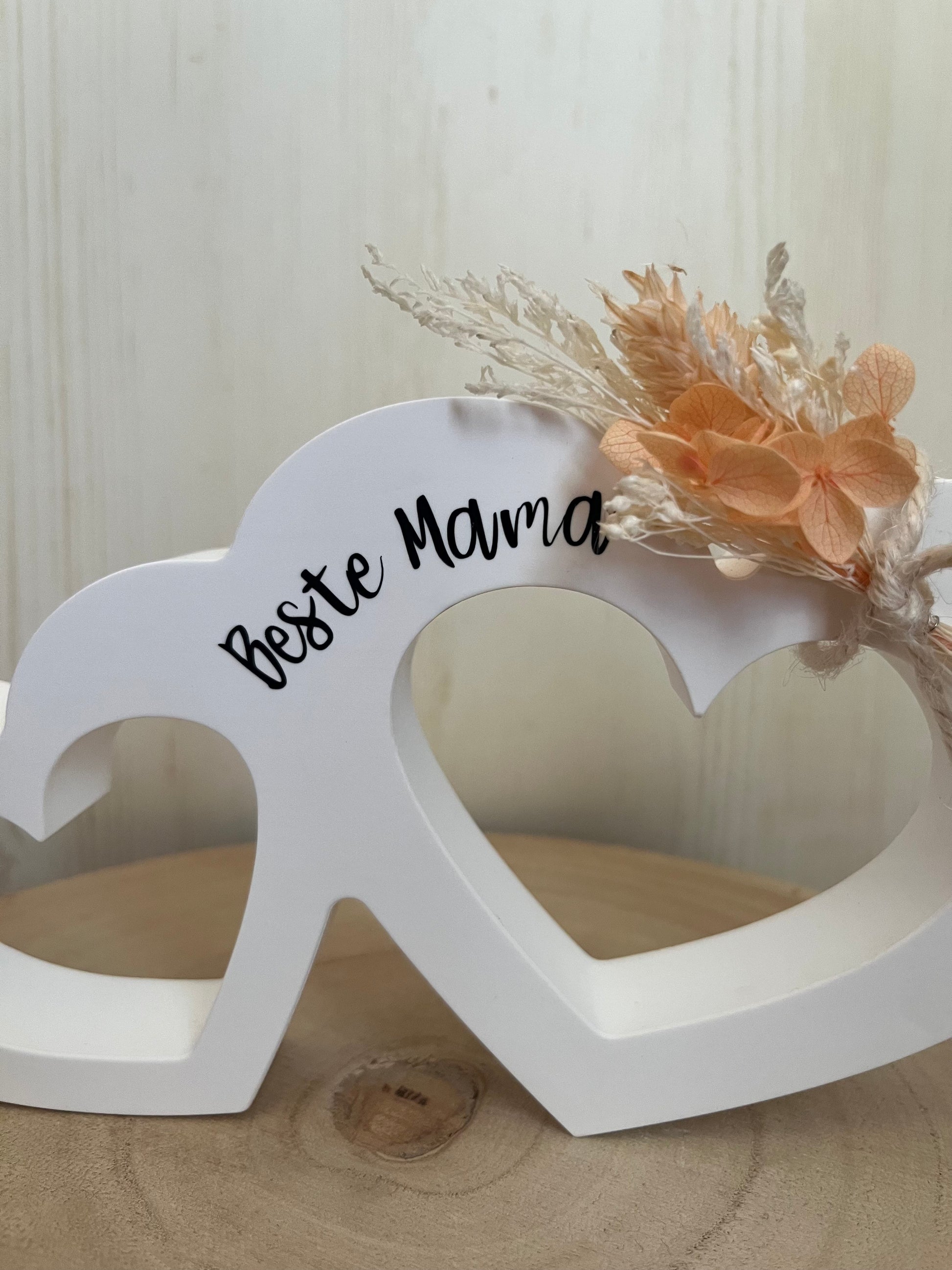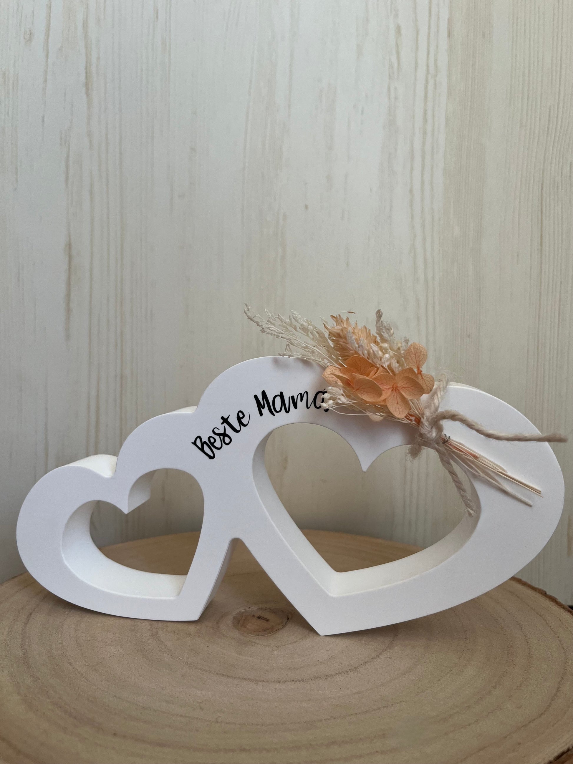 Manchmal sagen kleine Gesten mehr als tausend Worte. Dieses stilvolle Doppelherz mit Beschriftung, kombiniert mit wunderschönen Trockenblumen, ist ein hervorragendes Geschenk für besondere Menschen oder einfach als liebevolle Dekoration für dein Zuhause.