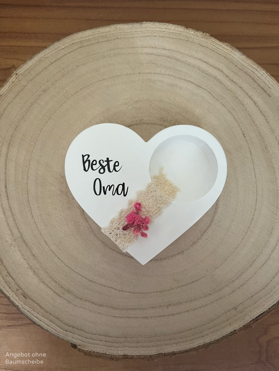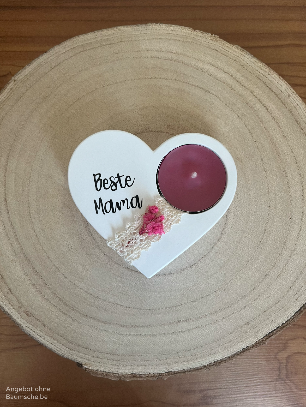 Die abgebildete Baumscheibe und das Teelicht dienen nur zur Dekoration und sind nicht im Lieferumfang enthalten.